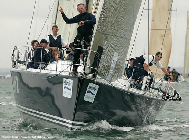 After yesterday's beautiful sailing conditions, the forecasters were proved right as damp and drizzly weather set in over the Solent producing light, fickle winds that struggled to top 10 knots all afternoon. An afternoon clatter of thunder and some impressive lightning streaks made for an eventful and wet day for all 898 boats competing today. With the tide turning to flood just towards the end of the 40 class starting sequence, there were tricky tactical decisions to be made and as the wind refused to settle, day three of Skandia Cowes Week called for steady nerves, supreme patience and a fair helping of luck.