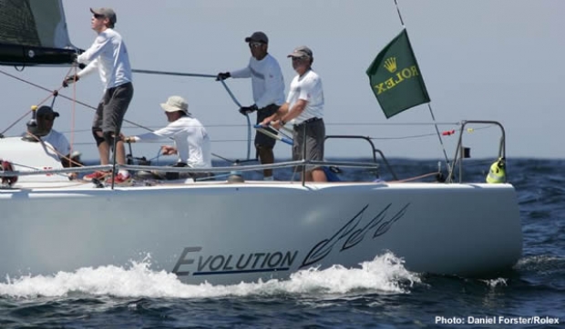 Evolution won the opening race from Australian class stalwart, Marcus Blackmore sailing Emotional Hooligan and early leader Belle Property skippered by Chris Meehan with a crew of youthful dinghy sailors.