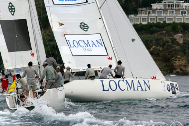Brady’s Group B fought not only each other, but also lighter winds than Group A did in the morning. While the wind averaged around 8 knots for Group A’s four flights, Group B contended with winds lighter than 5 knots for much of the afternoon. Throughout the day the wind was from an easterly direction, blowing into the Bay of Porto Azzurro.