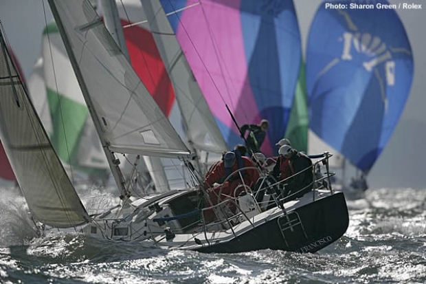 Year after year competitors are drawn to San Francisco Bay and the Rolex Big Boat Series because of conditions exactly like the ones offered today. Bright sunshine and 15-25 knot wind supplied the perfect setting, and the 103 boats knocking through the waves in front of the St. Francis Yacht Club provided the entertainment for hundreds of spectators lining the docks.