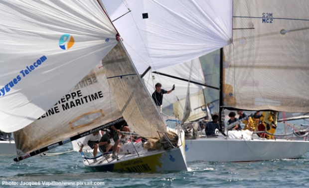 The first chapter of the Grand Prix Petit Navire ended tonight for the windsurfers, Mumm 30s and Open 7.50s. Unlike yesterday, the weather conditions were ideal for the Mumm 30s and the Open 7.50s, but not good enough for the windsurfers, who haven't been able to put in a single race in the entire three days of this competition.“I wouldn't wish it on anyone to have conditions such as yesterday” said Erwan Dubois, who won on the first day aboard the Open 7.50 Guyader Esprit de la Mer. “The wind was blowing in all directions, really not easy and the race committee had to be vigilant and very adaptable.”