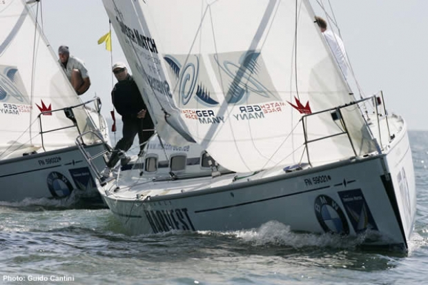 In glorious conditions today on Lake Constance in southwest Germany, 18 match races were held on the opening day of the 8th annual Match Race Germany, stage six of the Swedish Match Tour 2004-’05 season.