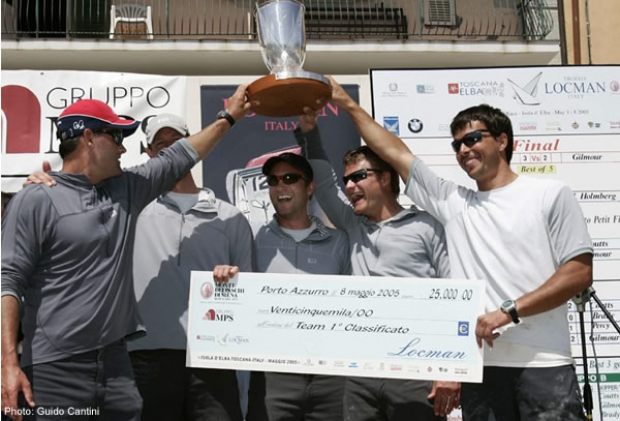 New Zealander Russell Coutts moved into a tie for the most number of victories lead the Swedish Match Tour today with his second straight triumph in the Toscana Elba Cup - Trofeo Locman off the Mediterranean island of Elba. Coutts won the event, the fifth of the 2004-’05 Swedish Match Tour, with a 3-2 victory over Australian Peter Gilmour of the Pizza-La Sailing Team.