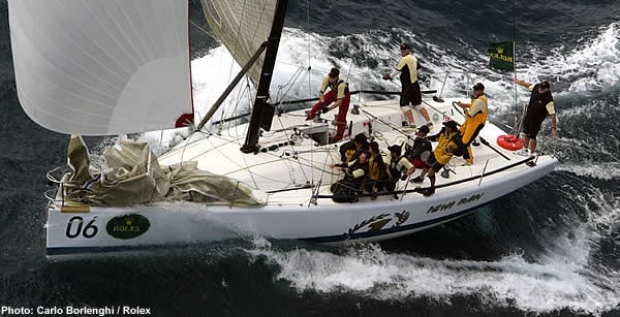 Barking Mad, on the other hand, began well but could not maintain her position. Tactician Terry Hutchinson said: "We had a good start and did what we wanted to do, but the first run was our big downfall." While the defending champions set their spinnaker on starboard and continued out to the seaward side of the run, boats behind opted for an early gybe towards the shore. "A lot of the guys beat us to the gybe, and they found four or five knots more nearer the shore. Then we wiped out, and spent quite a bit of time on our side. We lost seven or eight boats there." As usual, Jim Richardson's crew showed great ability to recover through the fleet, but a 13th place puts them in 14th overall, exactly half way through the fleet and not at all where they would expect to be.
