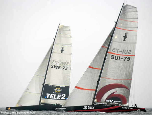 Alinghi (SUI 75) versus Victory Challenge (SWE 73)