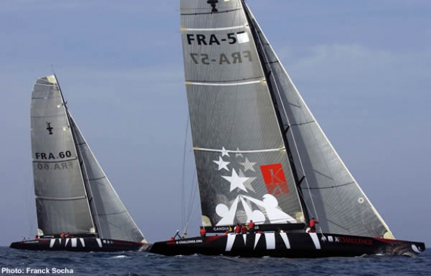 There was a great moment for K-Challenge French America's Cup challenger on the water today in Gandia (Spain), when FRA 60 finally joined her sistership FRA 57 for a preliminary sail.