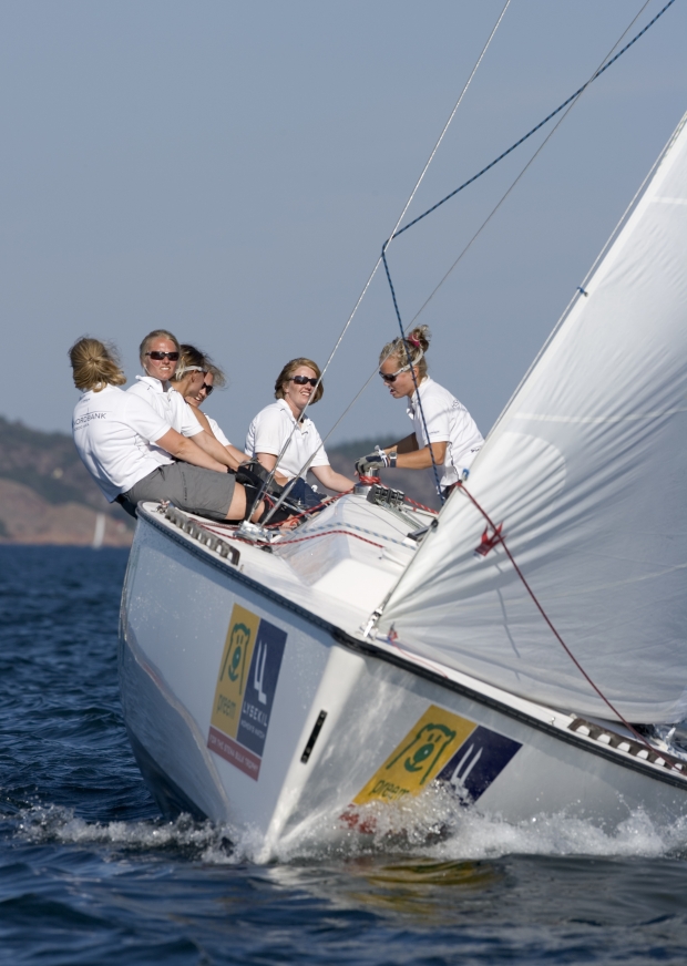 After a 2-0 disadvantage in the finals, Lotte Meldgaard Pedersen broke French Claire Leroy’s convincing lead and won three matches in a row to take victory. Leroy has more or less sailed without fault during the week and it was only in the finals she started to show any signs of weakness when Lotte Meldgaard Pedersen took an impressive advantage and won three out of five really close races. Meldgaard Pedersen and her crew Mia Nielsen, Christina Refu, Sille Christensen, Inge Merete Ebbengaard, and Anne Morup-Petersen showed that this team belongs to the very top of women’s match racing.