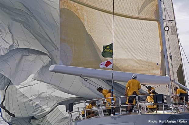 Neville Crichton recapped the day's racing: "We came off the starting line well and we were pretty close boat for boating with Wild Oats; she got through us just before the top mark. We followed her to the spinnaker running leg (at Secca Tre Monti), where we put a Code Zero up and she put a running spinnaker up. We sailed around the outside of her, opened up about three boat lengths on her and we just held it at three boat lengths for the rest of the race." Of the first critical moment in the victory, Crichton thought they made a better choice of spinnakers and that paid off. Regarding the second critical stage inside the channel, Crichton added: "It was difficult in the islands, at the same point as yesterday [off La Maddelena] she got up to us and once again it could have gone either way but we got the breeze probably 30 seconds before and opened up again. That was the end of the race virtually for them then. All we want to do once we get in front of her is just keep our gap and not do anything silly. We didn't take any risks and all we've got to do is finish with her and we beat her on handicap." Crichton is well aware that Morning Glory could be a real threat: "Morning Glory is there every race so I think in windward-leewards she would probably beat us on handicap. It's going to be pretty close, she's just about as quick as us upwind so it would be interesting."