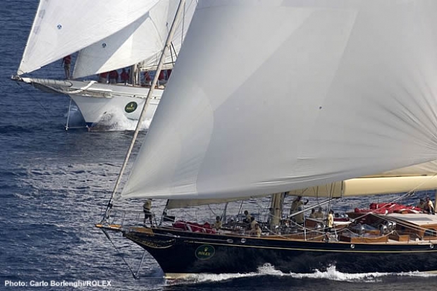 Images of the world's largest race boats in Porto Cervo on Saturday