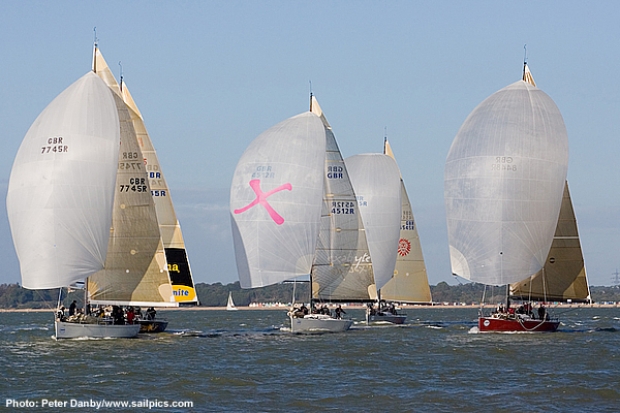 Proceedings commenced on Saturday with the return of the Big Boat Series, introduced last year and now comprising ten races over the first and third weekends of the main series. Racing is provided for three classes: 45 footers, 40 footers and IRC, and the radical thing about the event is that the 45s and 40s forget their handicaps and race on completely level terms. This works well, particularly in the 45 footers which were always amazingly close together, with plenty of place changing going on. It was Tony Mack's Swan 45 McFly that led round the first weather mark of the series and seemed to have legs on the Farr 45s in the wind of about 12 knots. But the racing soon proved to be even closer than in many strict one-design classes. After five races Werewolf appeared on paper to be streets ahead with four bullets and a second, but they were made to work very hard for their victories and probably enjoyed them all the better for it.
