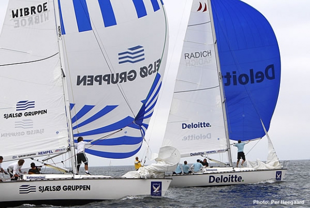Danish eyes were smiling today at the Danish Open. Both finalists Jesper Radich (DEN) and Peter Wibroe (DEN) are products of the Royal Match Race Center here in Skovshoved and gave the enthusiastic crowd an amazing display of Match Race sailing. In a close fought battle Radich emerged victorious with a 3-1 score line and a cheque for 100,000 Dkr (approx US$18,000).