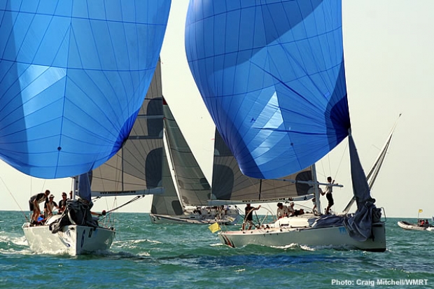 The 12 teams have been divided into two groups for Round Robin Racing in the first stage of the event. Just before midday racing got under way in a light westerly wind of 6-8 knots.