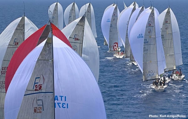 Elsewhere, TWT (second overnight) suffered two poor results and the frustration of this must have been compounded when they incurred a penalty on the last run of the day and got the spinnaker halyard tangled as they executed their turn. But with every crew suffering at some point and the possibility of 5 races to go much of the fleet remains in with a chance, as Mascalzone Latino's tactician Adrian Stead flippantly remarked, "anywhere in the top 20 feels like a good result!" Vincenzo Onorato and his Mascalzone crew are sailing their Farr 40 for the first time in four months and it is a new boat too. Today saw a marked improvement as they posted a score line of 1, 5, 13 - the first race proving the existence of passing lanes as they moved from fifth place at the first mark to a winning position by the end of the second beat. All things considered, Stead felt pleased to be only 10 points off the lead halfway through the regatta.