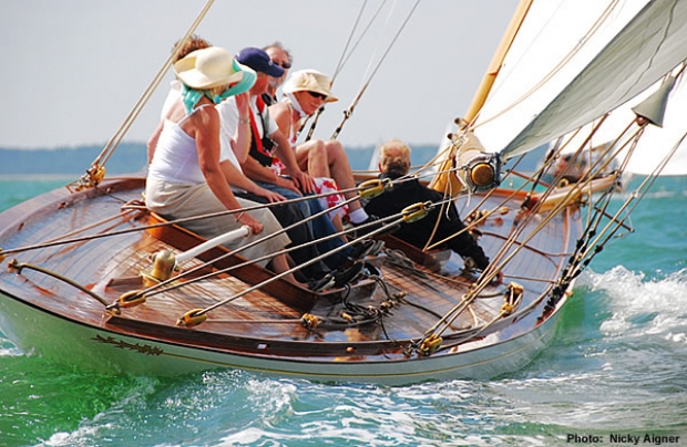 Taking third in Class Four was Roger Dann’s beautiful 1953 Lion Class Leonie, with Caroline Ross at the helm. "Caroline did very well for us today and admirably put up with us shouting at her" said Roger. "She only helms sporadically and more often than not it is in a Laser 4000 which is nothing like our boat". Leonie got a great start and was leading her class around the first mark. Dann described their race "Conditions were perfect for racing. We had plenty of wind and the sun was shining. We had a great battle with the other Lion Class - Patrick Moreton’s Twilight and also Barrie Martin’s A Day at the Races". Leonie was lucky to be racing at all today having run hard aground during yesterday’s race. "We were trying to get into the shallows to get the advantageous tide near Albert Fort when we overcooked it a little and were stuck fast on a falling tide. It took a rib to pull off in the end" commented a philosophical Dann.