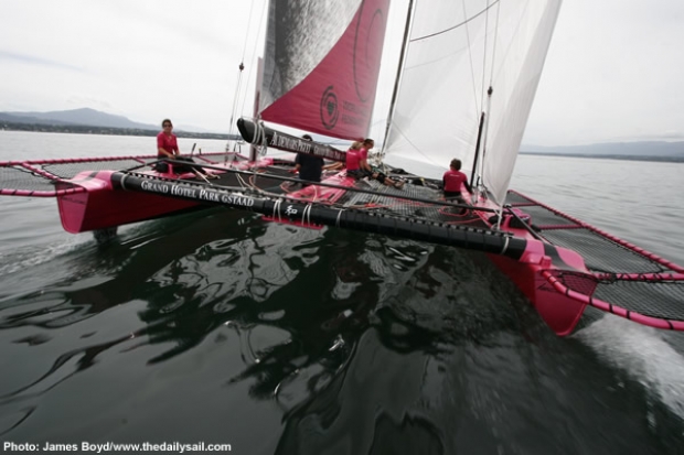 Before he got so deeply entrenched in the America’s Cup, Ernesto Bertarelli actively raced on Lake Geneva aboard state of the art multihulls. Now his sister Donata is campaigning D35 catamarans on the lake with her Ladycat team, while a women’s entry in the next America’s Cup has raised its head above the parapet in Fuxia Challenge. It doesn’t make much imagination to join the dots…