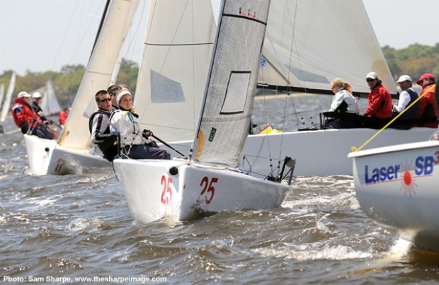 There was plenty of wind, but it was pretty consistent and great sailing breeze," said Jeff Worobel, sailing on the B-25 Red Hot Chili Peppers. "In fact, there wasn't any drama at all until we broke our rudder!" Worobel expects to be ready to race again in the morning.