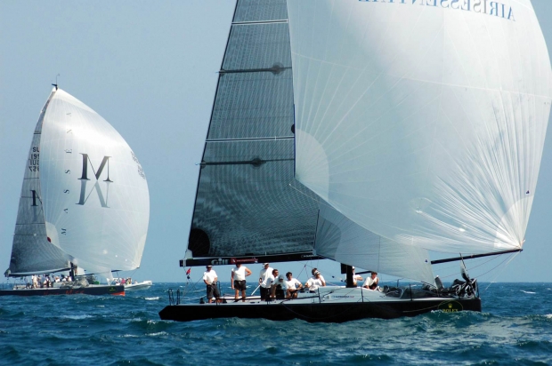 The race committee tried to start a third race but the breeze had already died down, giving them no option but send all eight GP42 yachts back to port.