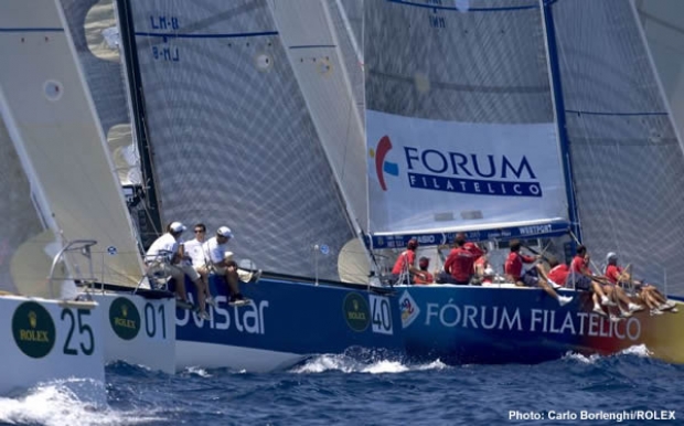 "It's been a very difficult race especially in the start and the first beat," commented Lorenzo Bressani at the end of the day. "Racing on a 40 footer, in these light conditions, you struggle a lot with the bigger boats of the fleet. It's hard to make your way into clear air and often you find yourself into situations which are way too tight, no matter what you do. You need to sail smart but you also need some luck," continued Bressani. "We started mid-line but we were able to keep this position only for a couple of minutes as Cam was sailing right above us and we had to tack away. Our race started at the end of the first run, where we were finally able to put enough distance between us and the 50+ footers and make our own tactical decisions. We decided to round the right mark, practically alone, and this proved to be a good choice as the wind shifted first to the right and then to the left enabling us to pass Forum Filatelico which was really close to us. Our goal is to win among the 40 footers and if we can beat some of the bigger boats, all the better."