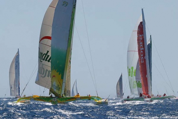 After being diagnosed with a serious medical conditions earlier this year which caused him to hand the helm of his Nigel Irens-designed trimaran across to his project manager Jean Maurel, Tornado champion Fred le Peutrec today put in a consistent performance in the three races today on board his Bayer Cropscience to take a convincing lead after the first day of racing.
