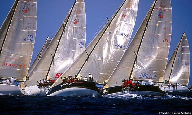 Below: John Calvert-Jones' Southern Star, to windward of World Champion Nerone