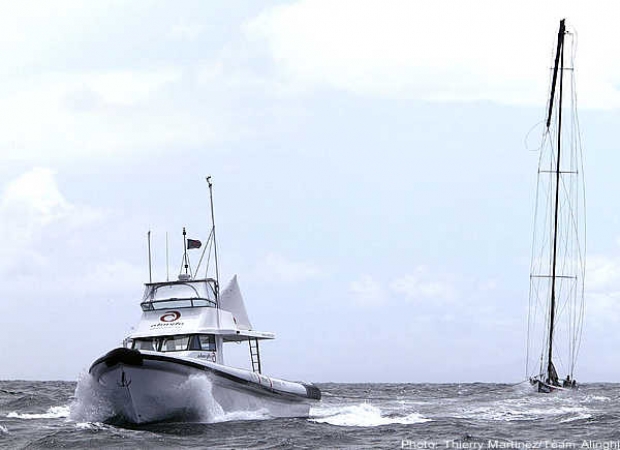 Alinghi's design team co-ordinator Grant Simmer added: "When the top of the mast broke, the crew did a great job of stabilising the rig especially given the conditions and thankfully no one was injured. We ended up quite a long way out towards the Coromandel peninsula as we had to run with the wind until we had cut away the mainsail and secured the rig. It's disappointing as we were planning to use this mast for our first race against Oracle tomorrow however we have a back-up rig which will be stepped this afternoon and we will be ready to race on schedule tomorrow."