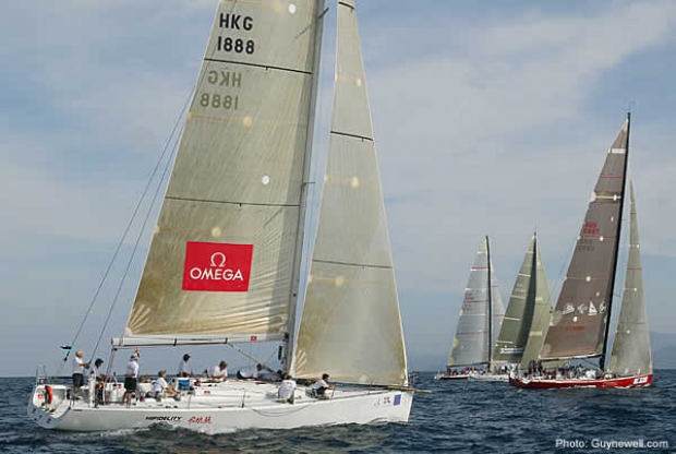 It was an exceptional day’s sailing at the Phuket King’s Cup today, the second event on the season’s Omega Asian Yachting Circuit. Winds blasted across the course all day from between 15 and 17 knots. The sun shone down with only an occasional cloud dashing for the horizon. With small white caps dotting the clean blue waters of the Andaman Sea it was the perfect setting for some dramatic yacht racing.