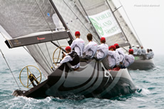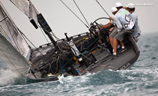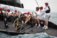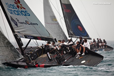 Conditions were very difficult for the last day racing, with a very shifty breeze of 8-15 knots and a pale sky covered with sand and dust and visibility reduced to half a mile. Team Aqua, Artemis and to a lesser extent Ceeref were in a position to win the fleet racing overall this morning. but it was BMW Oracle Racing that made the best start at the pin as Team Aqua managed to find clean air in the middle of the line. At this stage it wasn't going that well for Artemis, which ended up sailing in the other team’s dirty air. Then a massive right shift made the Swedish team’s life even harder as it gave a nice edge to No Way Back and Team Aqua. In a normal race, this would have been it, but this definitely wasn’t a normal race, with the gusts, shifts and even the marks hardly noticeable in the dust."We felt that the temperature was dropping brutally", explained No Way Back’s owner Pieter Heerema at the end of the race. "This was a clear indication that the wind would turn right and blow from offshore." The wind had started to veer in the middle of the second beat, sending half of the fleet way over the lay line and giving a perfect opportunity for Artemis to catch up. The wind carried on turning right during the last spinnaker ride, forcing the boats to finish under jib, although this didn't affect the results much. No Way Back won the race ahead of Team Aqua and i, while Artemis recovered well, going from last to fourth, keeping her in with a chance of winning the overall title.