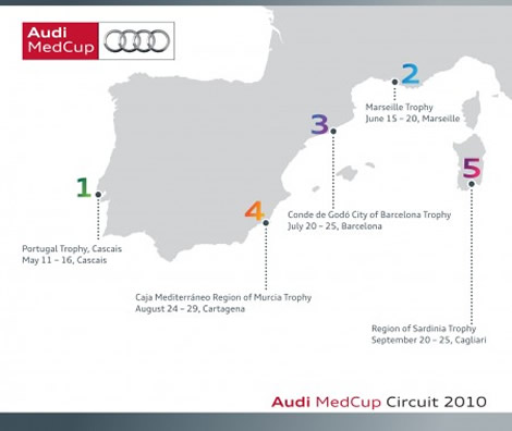 The 2010 Audi MedCup Circuit is due to start with the first event of the new season in Cascais on 11 May. The 2010 circuit has now been finalised as have the official names for this year's five trophies.