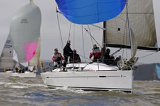 After yesterday’s lively weather, the Solent seemed almost benign for day tow of the RORC Easter Challenge as a southeasterly breeze of 10-15 knots welcomed the competitors to the starting area, just east of the Brambles Bank. PRO Jamie Wilkinson elected to race the fleet around tighter and shorter courses than the previous day with all six classes able to sail the three scheduled races.