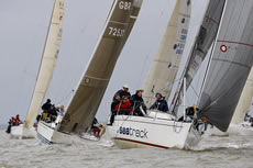 Adam Gosling’s Corby 36 Yes! had another perfect day to make it five wins in a row for the series. Robert Baker’s X 322 Brightwork had three podium finishes today, to move up to second place, ahead of the British Keelboat Academy’s J/80, helmed by Mark Lees.