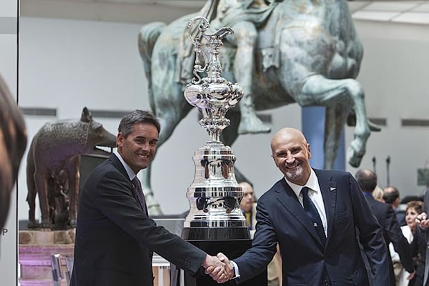 Speaking in the Sala Exedra in Rome’s Musei Capitolini, surrounded by some of Rome’s most precious treasures, Russell Coutts representing the defending Golden Gate Yacht Club and Vincenzo Onorato on behalf of the Challenger of Record, mapped out the future of the America’s Cup.