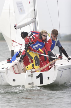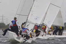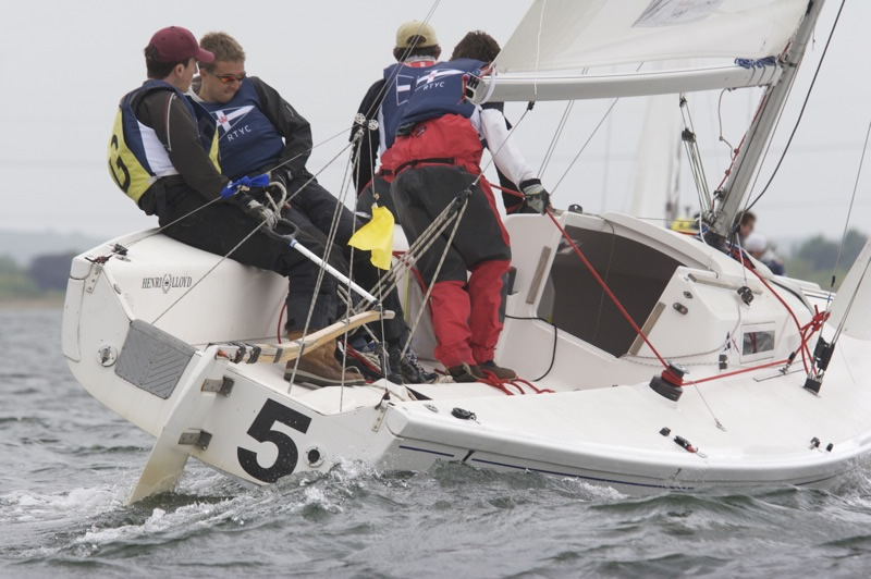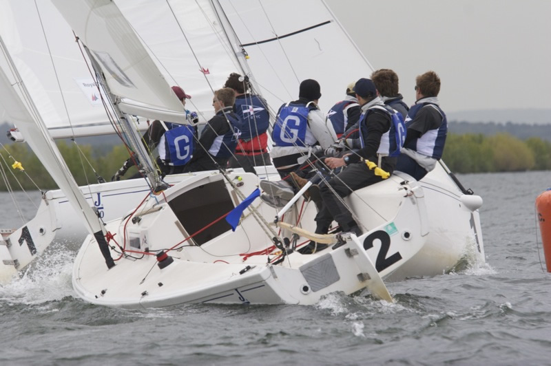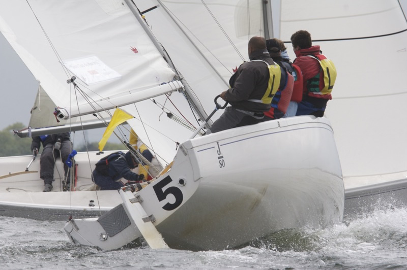 Sailing in a fleet of eight carefully-matched modified J80s the competition began with a two-day double round-robin in which each team raced each other team twice. St George topped the league, winning 11 out of their 12 matches and losing only to the hosts and current holders, Royal Thames, and thus apparently setting the scene for the finals. It was a scene dramatically re-shaped by the winner-take-all nature of the Cumberland Cup's competition structure.