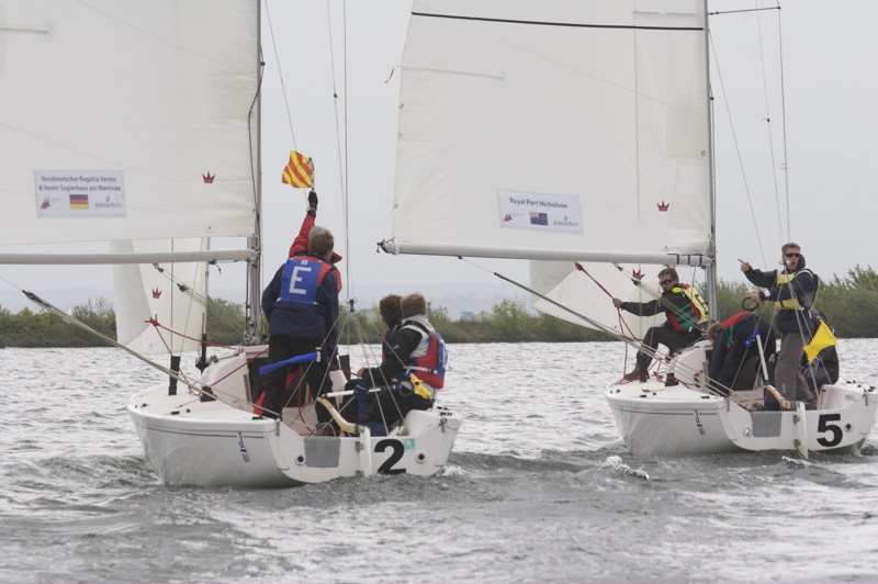 With Port Nich out of the way, the crunch race in Round Three was that between the Southern – highly vocal as always – and Monaco, who had quietly beaten Royal Thames when Ben Clothier of the host club earned a penalty for inadvertently but illegally 'sculling' the boat with the rudder while trying to slow down to block his rival. Given that in the round-robin YCdeM had lost almost as many races as they had won (and then been penalised a further point for a violent T-bone collision in their early race against St George) it is not unkind to suggest that their presence, by Round Three, on the top rung of The Ladder had been predicted by few. But Ian Ilsley, their team captain who by his own admission 'hadn't team raced for years' had by now earned both the respect of his rivals and the nickname 'the Old Fox'.