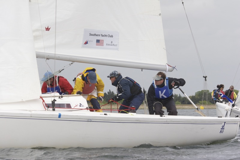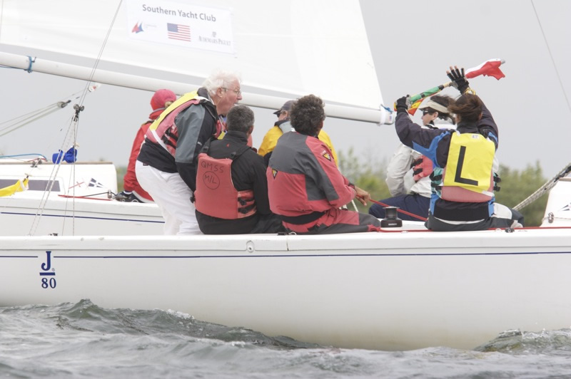 With a close to perfect score, Andrew Fowler's team of Sam Hurst, Brendan Fafliani, John Sheehy, Nick Smyth, Guy O'Leary, Peter Bailey and Phil Lawton from Royal St George YC in Dublin, Ireland, won the 2010 Royal Thames Cumberland Cup from Ian Ilsley's team from Yacht Club de Monaco. Firm friend and arch-rival of the home side the Southern Yacht Club of New Orleans was third, claiming by dint of that result the Bourgne Cup, contested on each and every occasion the clubs meet, in whatever larger competition..