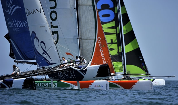The fastest man around the planet, Franck Cammas on his Groupama 40, scored a victory in the final race today allowing them to scrape into third overall ahead of Paul Campbell-James' team on The Wave, Muscat.