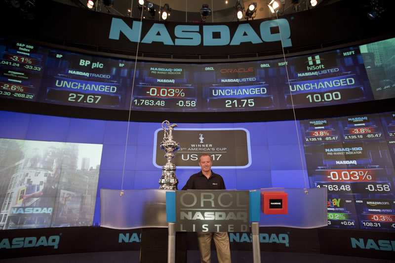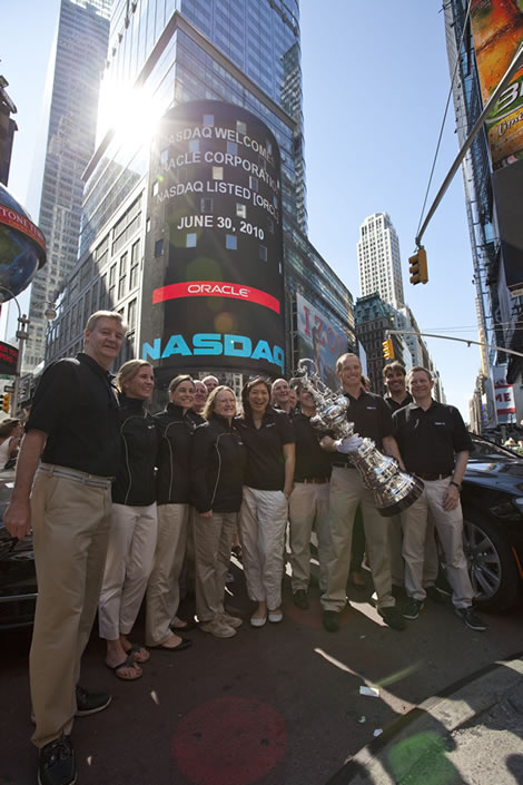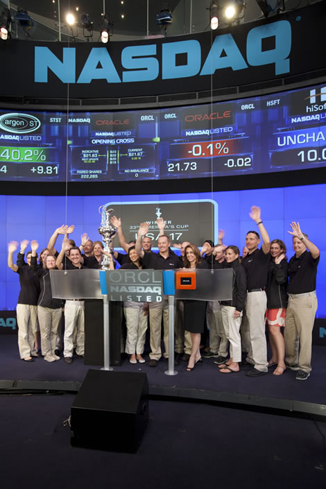 Wednesday, June 30th, saw the team in New York City. Spithill, the Cup and team members were featured on the CBS Early Show, and about one hour later Spithill rang the bell to commence the day’s trading on the NASDAQ stock exchange.