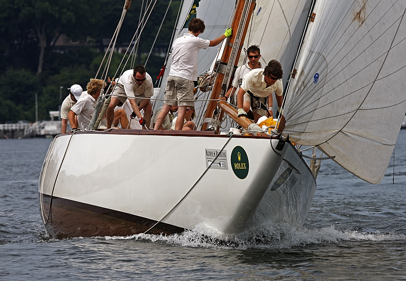 With just one race scheduled for Sunday, the fibreglass design YQuem II skippered by Jean Fabre has proved simply unbeatable, however behind her the Classic designs enjoyed close racing for second overall. Aun, belonging to Japanese skipper Yutaka Kobayashi and sailed by members of his family, is currently lying in the runner-up slot after scoring a second, third and fourth place today. Just three points behind is Anne Sophie (GER 15), who also picked a up a second along with two fifths, and the famous Germania III (GER 9) – which raced on the waters off Kiel back in 1936, when she won the Olympic bronze medal – had a fantastic day with second, third and fifth results. The duel between the two First Rule boats from Lake Constance also continues, with Sposa (GER H4) just getting the better of Elfe II (GER H9) so far.