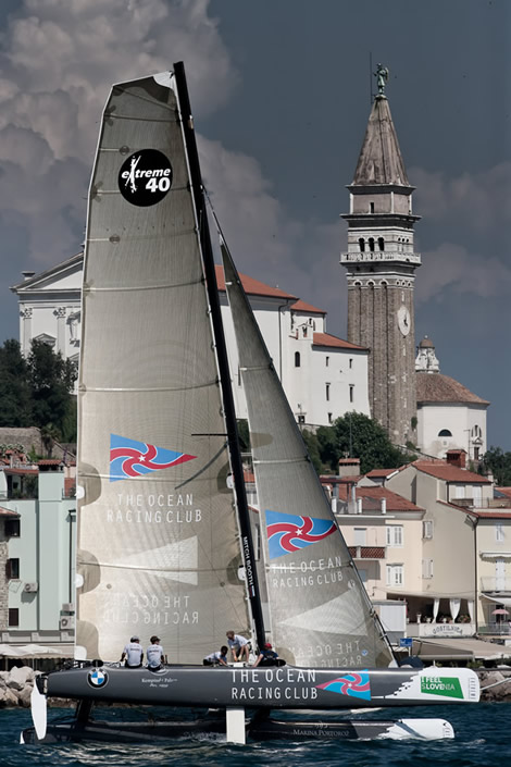 After an exciting day's racing yesterday, the second day of the first ever Extreme 40 World Championship, hosted by The Ocean Racing Club at the Kempinski Palace Hotel in Portoroz, was to be no let down. Racing started in building 6-8 knot breeze, with the first upset came when Shirley Robertson's Team Kempinski/Great Britain, which had led the fleet for the majority of the first race, were reigned in by home side, The Ocean Racing Club skippered by Mitch Booth. The Ocean Racing Club made use of crewmember and Portoroz resident Tomaz Copi's local knowledge passing Team Kempinski/Great Britain in the latter part of the race. Booth, co-creator of the Extreme 40 class, eventually steered The Ocean Racing Club to victory, crossing the finish line in one hour and ten minutes.