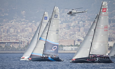 TeamOrigin lead on the water from gun to gun chased by Emirates Team New Zealand but both chose to hook the wrong way round the finish line leaving the finish gun to AudiA1 powered by ALL4ONE.
