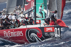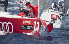 Racing in less than 10 knots of gentle sea breeze the British TP52 helmed by Ben Ainslie was more than one minute ahead at the finish, after gaining on each successive leg, but they turned back upwind through the finish line, as did the Kiwi reigning champions - both registering DNF's - leaving AudiA1 powered by ALL4ONE to take the winner’s gun.