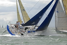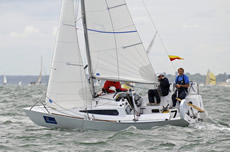 A few minutes later Robin Ebsworth's Quintessence, H Tidbury's Enigma and Nick Holland and Sophie-Jo Walker's Kestrel all crossed ahead on starboard. However, when they next crossed tacks Greenwood had regained the lead.