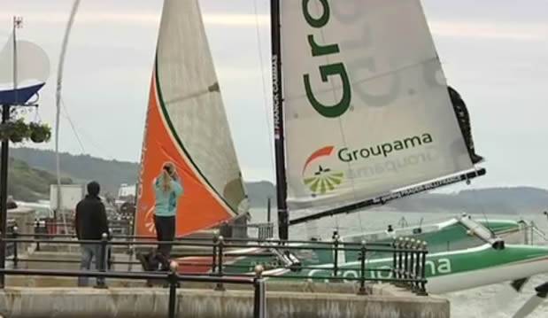 At the Extreme Sailing Series Cowes, Groupama40 was rounding the weather mark when the Groupe Edmond de Rothschild ran into the back of her destroying her steering. Running towards the sea wall at high speed Cammas and his crew bailed off the boat as it careered on to the rocks, the boat only saved as its daggerboards touched first...