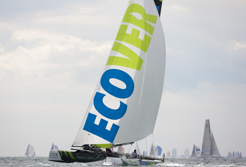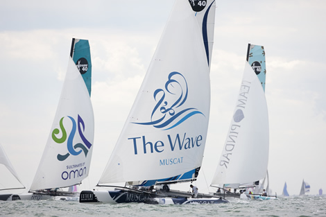 The third day of the Extreme Sailing Series at Cowes Week saw less wind, but no less action on the water as the nine teams competing in the UK round of the five-stop pan-European circuit battled for every point and every place on the race course. The sailors were pushing all the time with some very aggressive starting tactics resulting in a general recall in race 15, and some teams finding themselves on the wrong side of the start line when the gun fired, having to turn round and re-start again in two races. The umpires were dishing out the penalties like oranges at half-time.