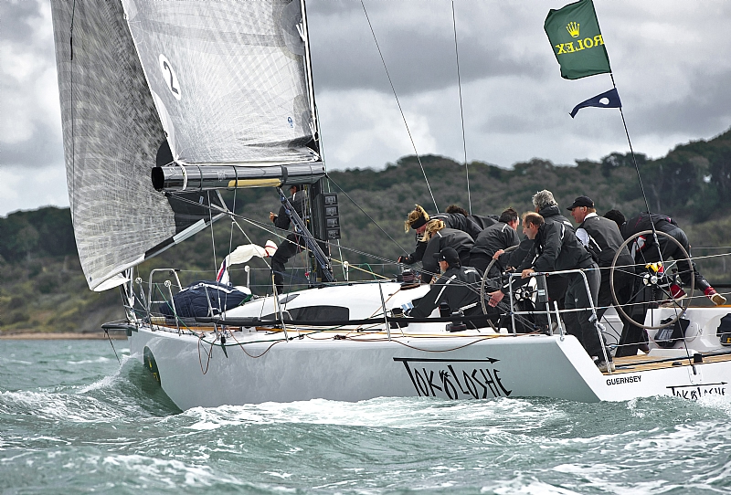 “We just went fast,” said McIrvine explaining today’s result. “Upwind we go higher and faster than we ought to for this size of boat if you consider it is a cruiser racer. Downwind we go quick too. It is a semi-standard production boat and it does go extremely well.” McIrvine acquired the boat this year from past Rolex Commodores’ Cup winner Géry Trentesaux and has changed the bulb keel back to a fin but kept the go-faster carbon fibre mast.