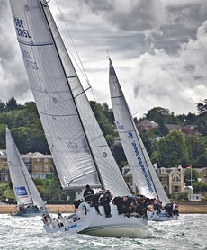 A grim overcast start and lumpy wind against tide conditions gave way to brilliant sunshine and a summery finish off the Royal Yacht Squadron for the Rolex Trophy Day inshore race at the 2010 Rolex Commodores’ Cup. Today’s one race was held around multiple marks in the central western Solent starting in 18 knot southwesterlies with a wet beat through short chop before the tide turned and the wind dropped gradually through the race, ending at below 10 knots.