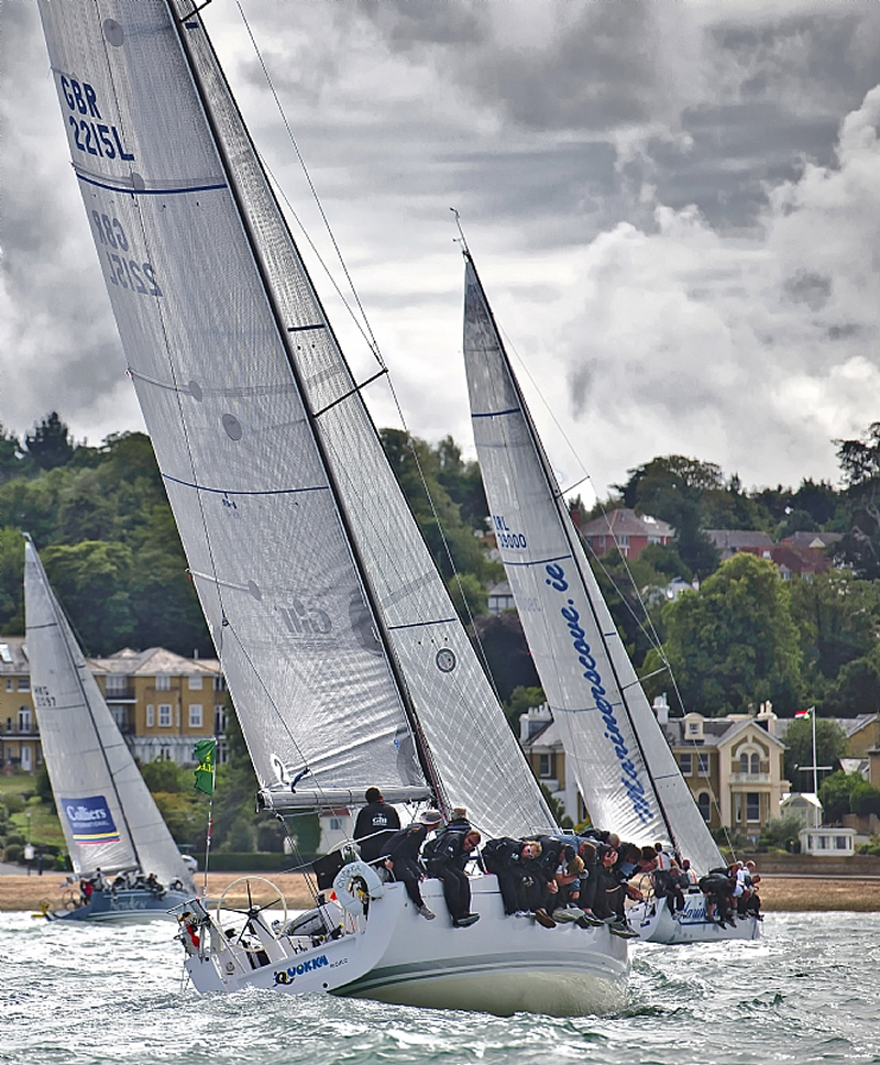 Roxy 6 was only launched in April, but has had an intensive season at regattas throughout the UK and her native Ireland. Designed by Cowes resident John Corby, the 36 footer relished today’s conditions. “The short Solent slap suits this sort of boat,” said Creighton.