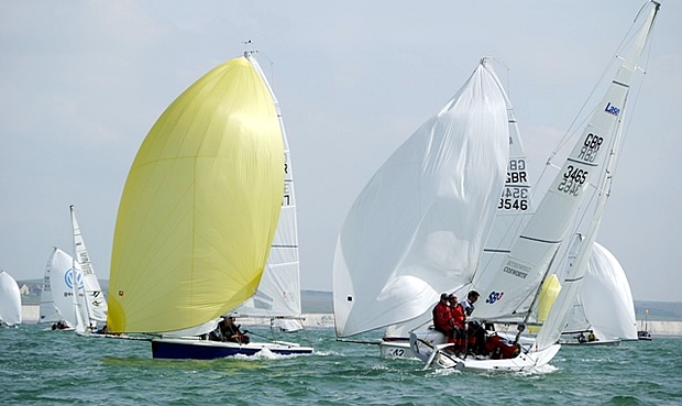 Peter Saxton was congratulated by the fleet this evening for taking the decision to not sail the fourth scheduled race today. The sea breeze dropped to nothing and the fleet were sent home. At the end of racing, the World Champion, Jerry Hill is repeating his form from Italy earlier this summer and leads the fleet at the halfway stage of the regatta. Andy Oddie, In Your Pocket lies second, his best result so far in the fleet while David Hudson and the crew of Spirt of Cape Town lie in third.