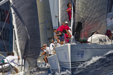 The start gun was fired at 1400 once the thermal breeze had filled in on the Gulf of Scarlino blowing fron the northwest at 10-12 knots. X on the Beach owner and helmsman Ingo Dietrich rounded the first windward mark in the lead, stretching out ahead of Lelagain and Giochelotta, winning the race and finishing the championship in 6th overall.