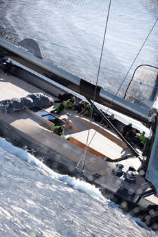 Hallowe’en newest owners bought her in 2006. Two of them, Michael Cotter and Dan O’Connor, were racing Dragons in the Med where they were told the 83ft classic was for sale, and what started as an innocent inquiry ended up as an addition to the fleet.