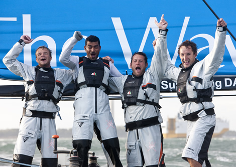 One would have been hard pressed to have scripted better the conclusion of the 2010 Extreme Sailing Series with two boats jockeying for not only victory in the Almeria event, the last on the circuit this year, but also the overall championship. In the end it was Paul Campbell-James and his The Wave, Muscat team of tactician Alister Richardson, trimmer Nick Hutton and Omani bowman Khamis Al Anbouri, who beat the top French team, Groupe Edmond de Rothschild, led by Tornado and offshore multihull veteran Yann Guichard.